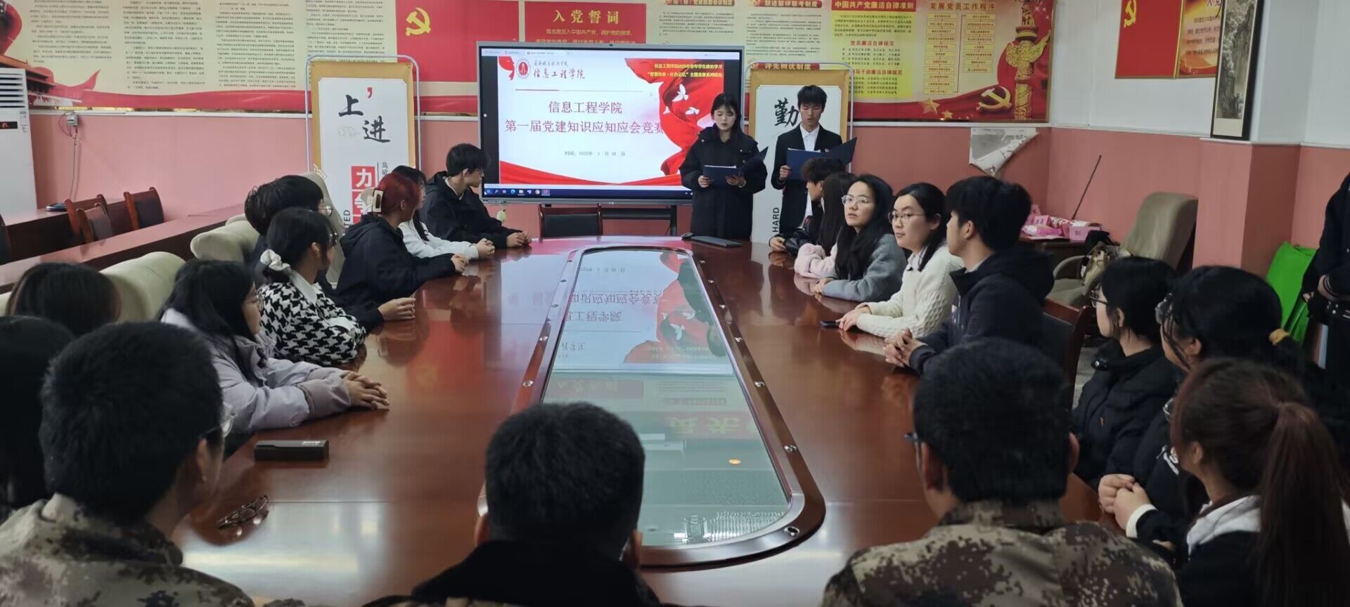 此次竞赛涵盖党史、党章、党纪以及时事政治等多个方面内容,全面考察青马学员对党建知识的掌握程度。比赛分为初赛和决赛两个阶段,初赛采用线上答题方式,选拔成绩优异的六支队伍晋级决赛。决赛采用现场竞赛方式进行,设置了必答题、抢答题和风险题等环节。决赛中,选手们思维敏捷、沉着应对,凭借扎实的知识储备和出色的团队协作,赢得了现场观众的阵阵掌声。尤其是在抢答环节,各队争分夺秒,比分交替上升,将比赛气氛推向了高潮。