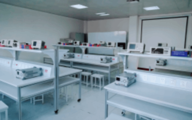 现代通信实训室、SMT实训基地、COB实训基地、电子创新实训室、电子测量实训室、电工电子实训室、单片机与EDA技术综合实训室、嵌入式系统实训室等。